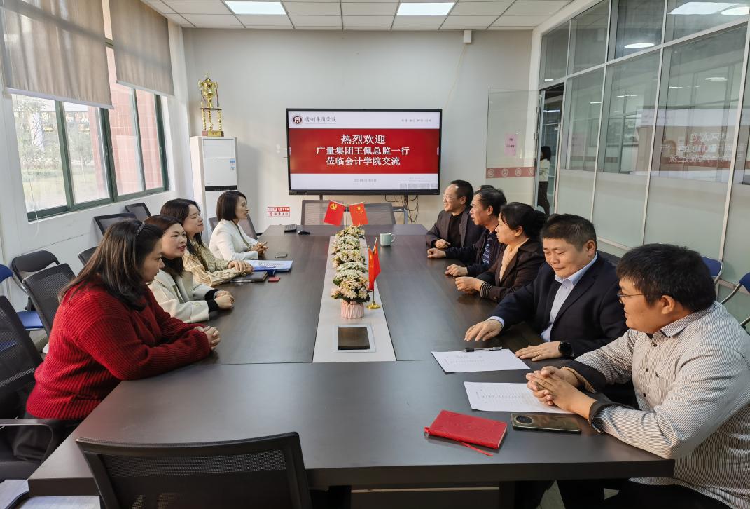 2024年11月28日下午,我院迎来了广量集团高管一行的来访交流,广量集团人力资源总监、广量商学院执行院长王佩及广量集团总裁商务助理袁婉珊莅临我院。此次交流活动为校企双方搭建了一座深度沟通的桥梁,对推动产学研合作具有重要意义。