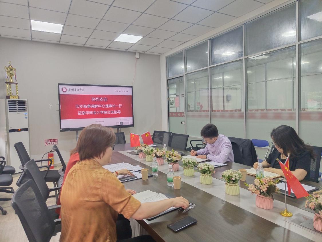 华商科教集团高级总监黄晓刚、会计学院院长助理兼数智会计与商务服务产业学院执行院长陈蒙梦与中审华会计师事务所高级合伙人曾丽群、程斌就工作坊及商事调解等合作意向进行了深度探讨。
