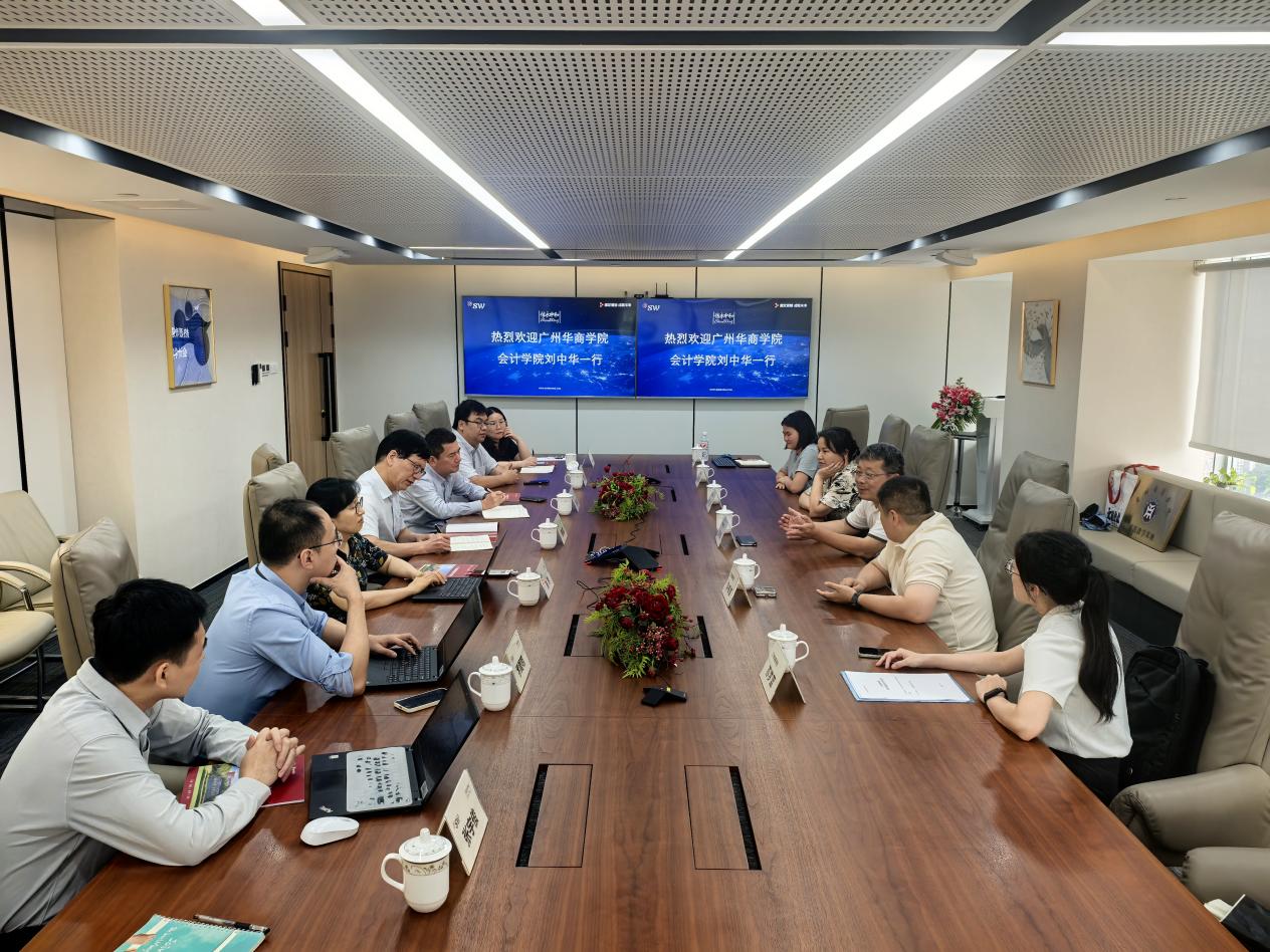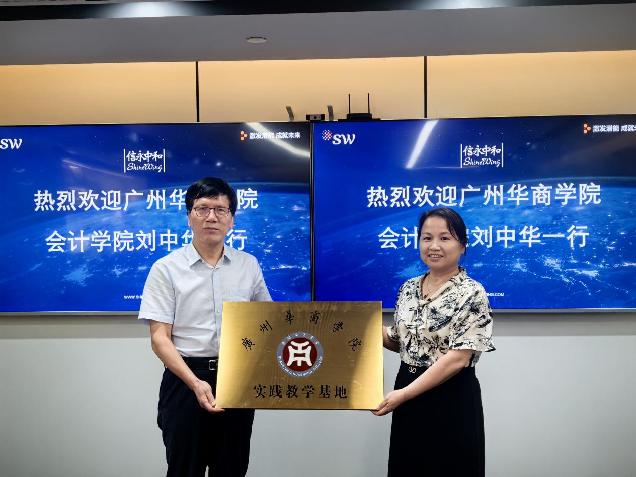 为进一步加强校企合作,推动产教融合,落实实习基地建设工作,2025年7月2日下午,广州华商学院会计学院客座教授刘中华、副院长杨旻、副院长周书域、会计系副主任郭美娣、会计系专任教师苏梦蓝一行5人前往信永中和会计师事务所(特殊普通合伙)广州分所,开展校外实践基地签约及授牌仪式。信永中和会计师事务所(特殊普通合伙)广州分所所长陈锦棋,合伙人贺春海、唐玲,业务经理温靖、罗夏明、张宇俊以及人事经理黄玉珍、人力专员邓婉晶热情接待了来访团队,并出席了签约仪式。