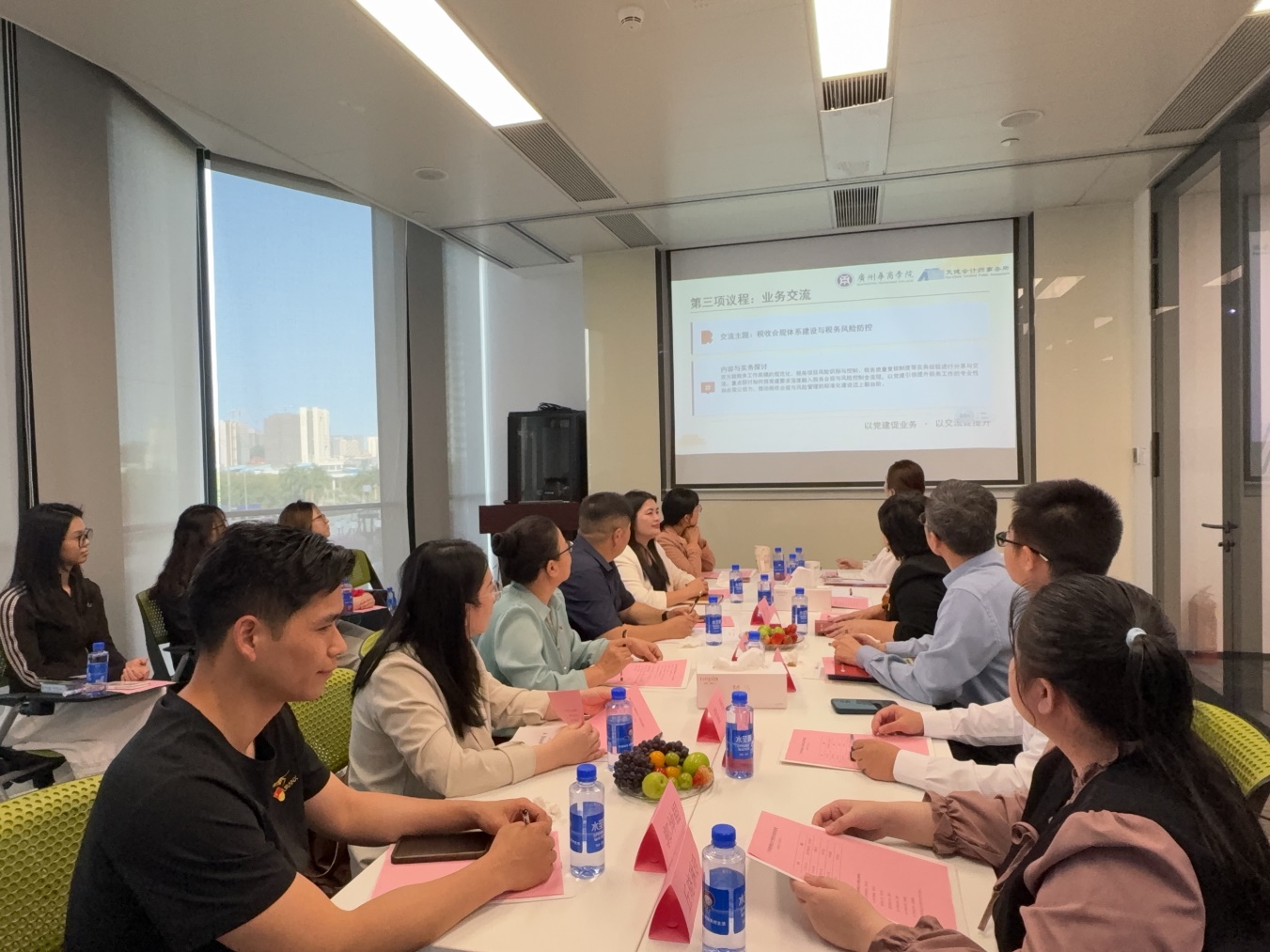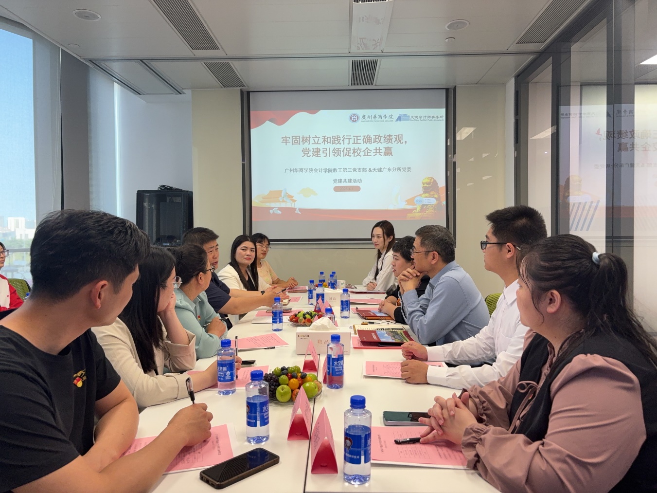 活动伊始,校企双方围绕党建工作开展深度交流。天健广东分所党委委员卢玲玉详细介绍了天健广东分所党组织建设、党建文化打造、党建与业务深度融合的实践经验与工作成效。会计学院副院长周书域分享了会计学院以党建引领人才培养、推动产教融合的工作思路与实践成果。双方就党建资源共享、党建活动联办、党员实践教育共建等方面深入探讨,进一步凝聚校企党建联建共识,为以党建促合作、以合作强党建打下坚实基础。
