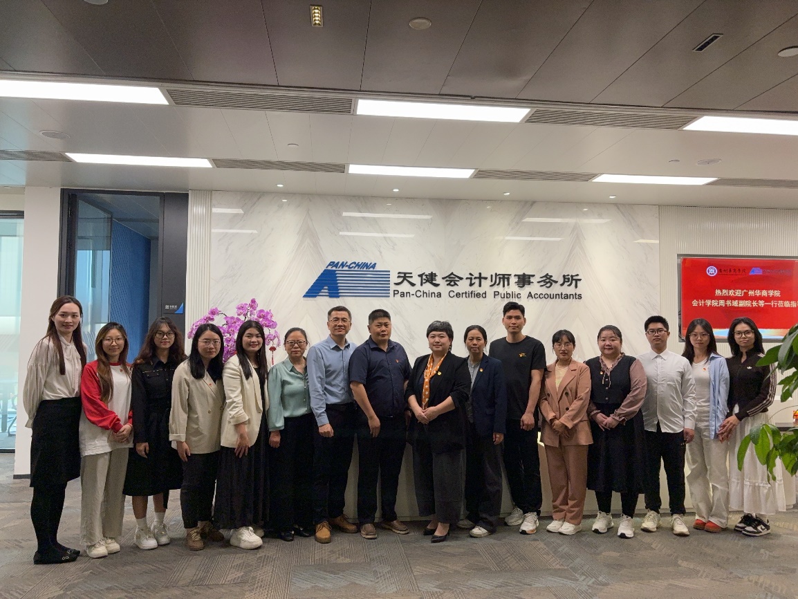 为持续深化校企党建联建、扎实推进产教融合与实习基地提质建设,2026年4月1日,广州华商学院会计学院副院长周书域、教授张翠凤、税务系主任李志凤、副主任雷雨及学院教师焦熙、郭坤锟、丘晓琳玲,携学生党员代表一行赴天健会计师事务所(特殊普通合伙)广东分所,开展实习基地实地检查与党建交流活动,并看望慰问在所实习学子。天健合伙人、广东分所党委委员卢玲玉,高级合伙人彭宗显,广东分所高级经理、党委委员范佳媚,人力资源部助理经理林芳及实习生代表林均熹热情接待并陪同交流。