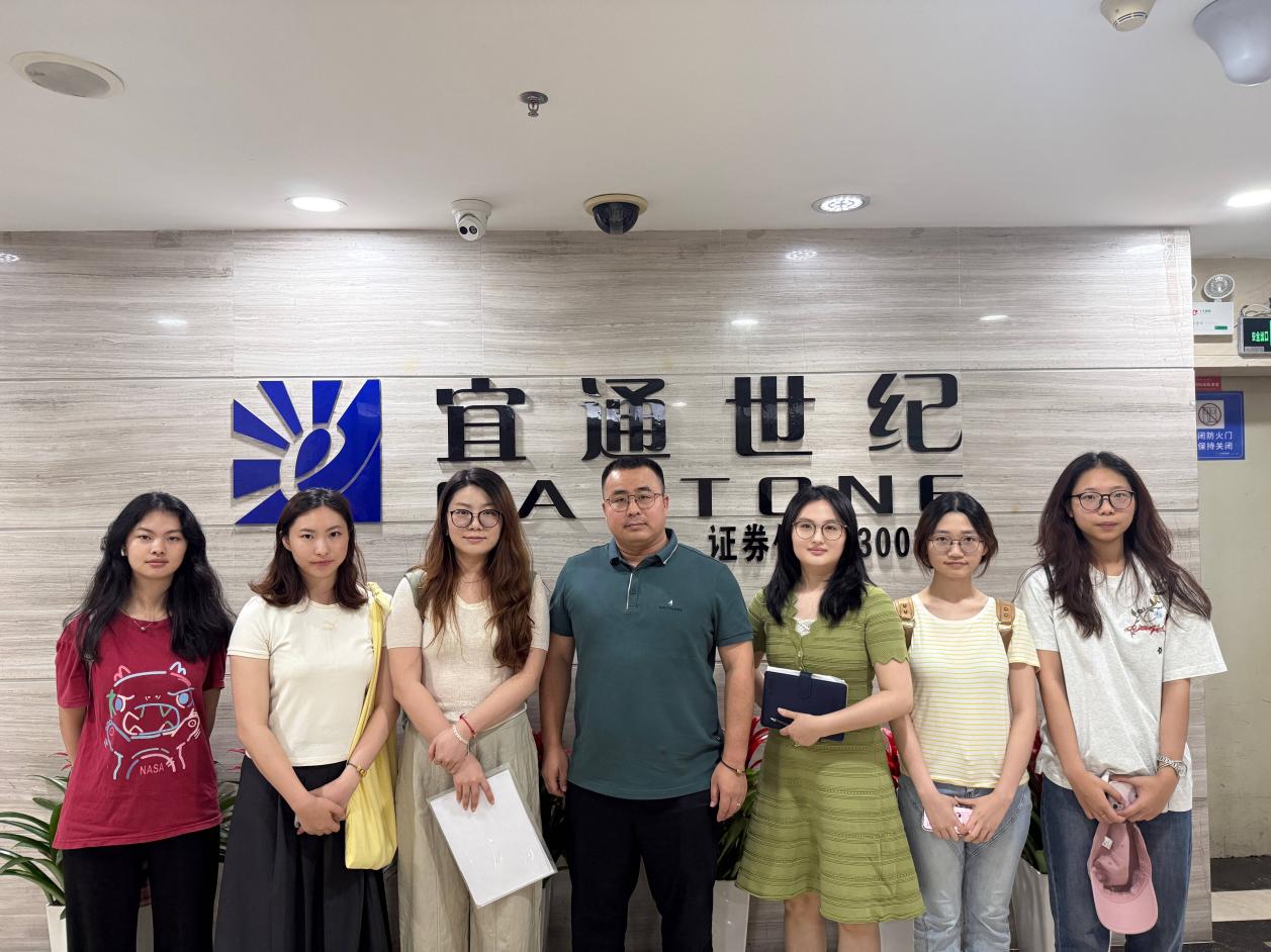 为深化产教融合、推进校企协同育人,精准对接新时代财会行业人才需求,完善学院应用型人才培养体系,2026年4月22日,会计学院审计系副主任郭晨、教研室主任苏靖童,带领学生代表一行,赴上市公司宜通世纪科技股份有限公司开展校企合作交流,同步对我院在企学生实习情况进行全面了解,并结合学院实习管理相关要求,对实习基地运行情况开展现场核查。